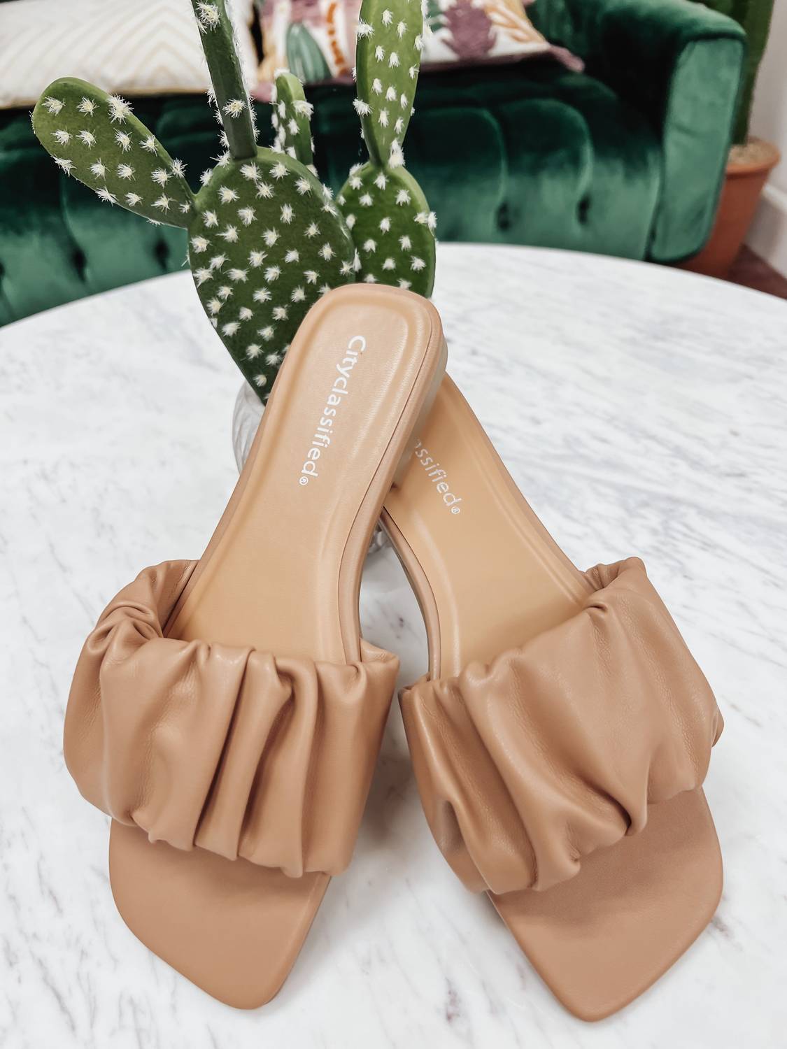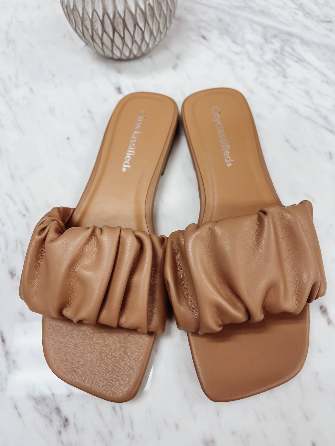 This sandal will take you from brunch to dinner and everything in between. This sandal features a trendy squared toe and flat heel, making it a stylish choice for graduation or other special occasions. Designed for adult women, this versatile sandal runs true to size, with a recommendation to size up half a size if in between sizes. With its sleek design, it's ideal for those seeking both fashion and comfort in every step.