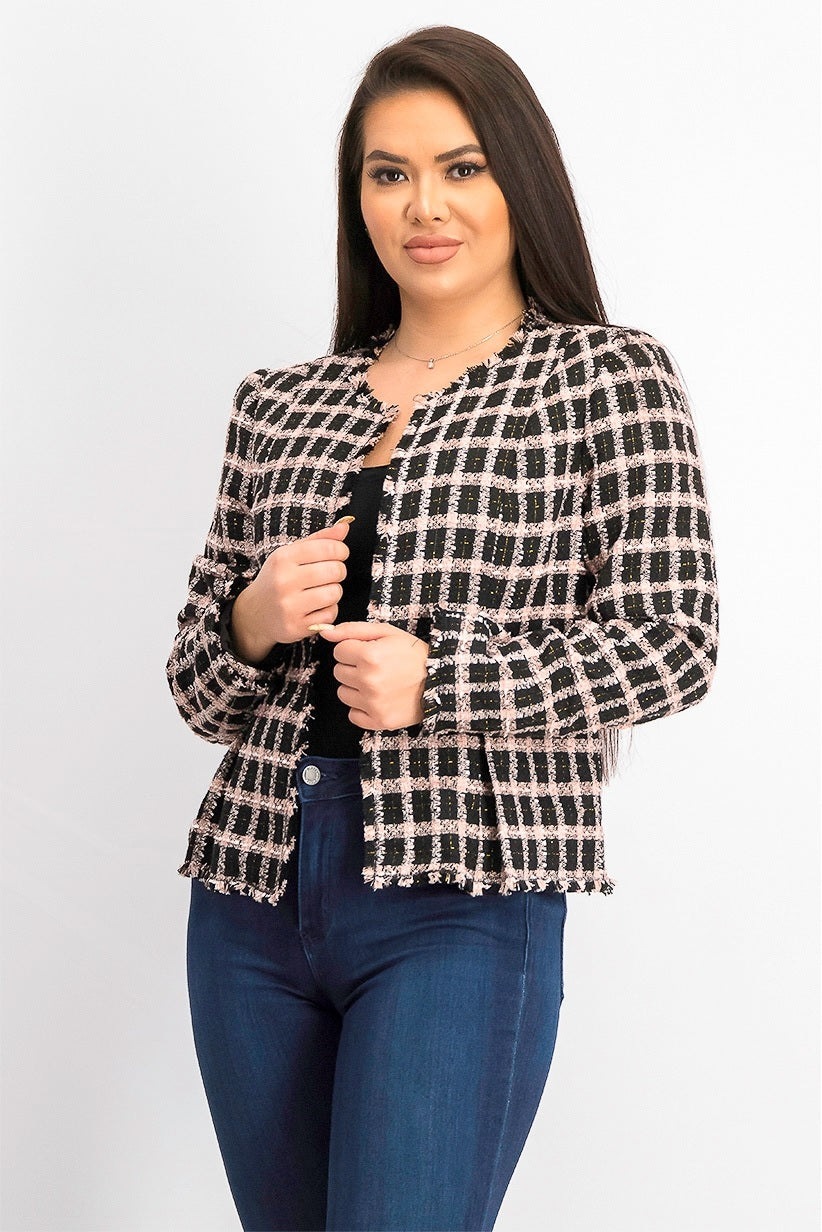 Cece Women's Grid Tweed Frayed Jacket Black Size 12