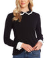 CeCe Women's Pleat Collar Long Sleeve Top Black Size Petite Medium