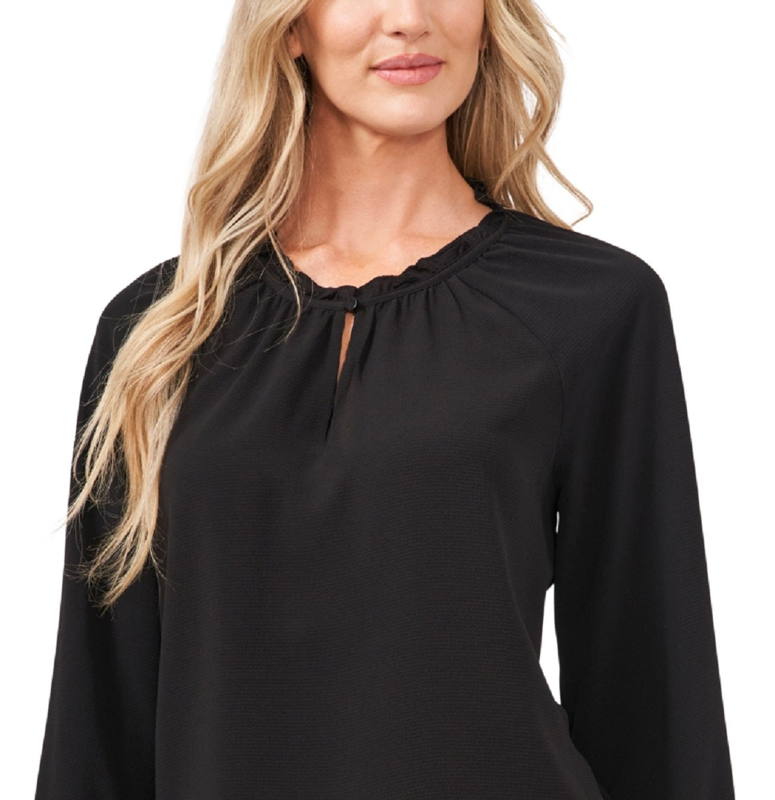 CeCe Women's Ruffle Detail Keyhole Blouse Black Size Large