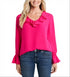 CeCe Women's Ruffle Detail V Neck Blouse Pink Size Small