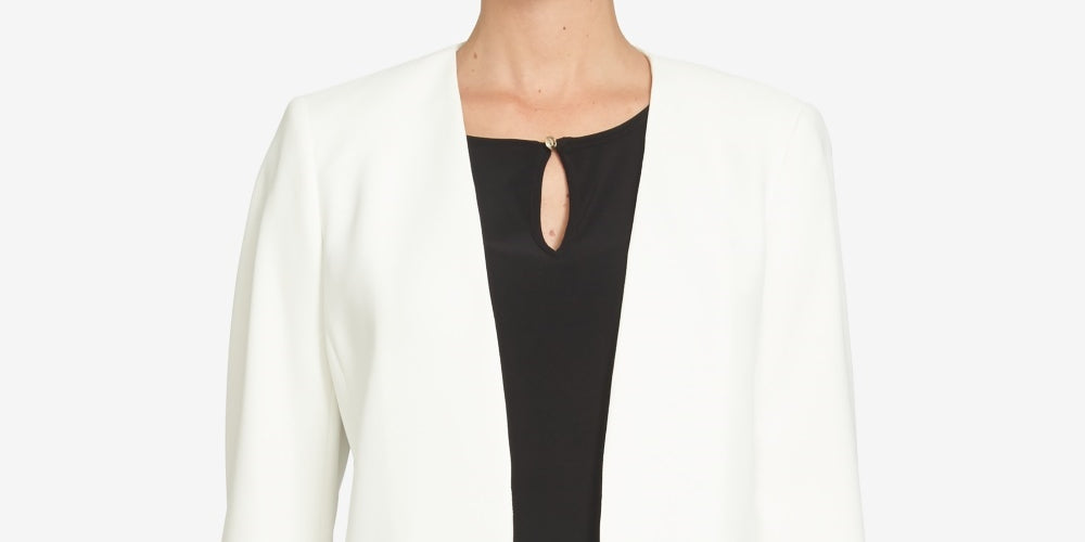 CeCe Women's Tie Sleeve Open Front Blazer White Size 10