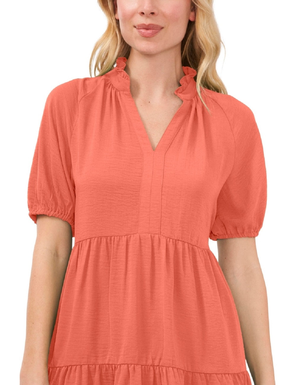 CeCe Women's Tiered V Neck Babydoll Dress Orange Size X-Small