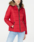 Celebrity Pink Juniors' Puffer Coat With Faux Fur Trim Hood Red Size X-Small