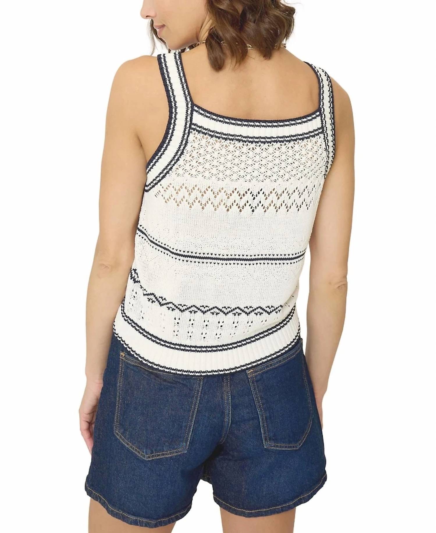 This classic tank top is perfect for layering and cute enough to wear on its own. Introducing the Emanuel Stripe Tank Top by Central Park West, a stylish addition to your summer wardrobe in crisp white. This sleeveless tank features a delicate patterned design with a soft cotton composition, offering a refined yet relaxed look. Its scoop neck and lightweight feel make it ideal for sunny days or layering underneath a blazer for a chic touch. Closure: Pull-on style. Care: Machine wash and line dry for effortless maintenance.