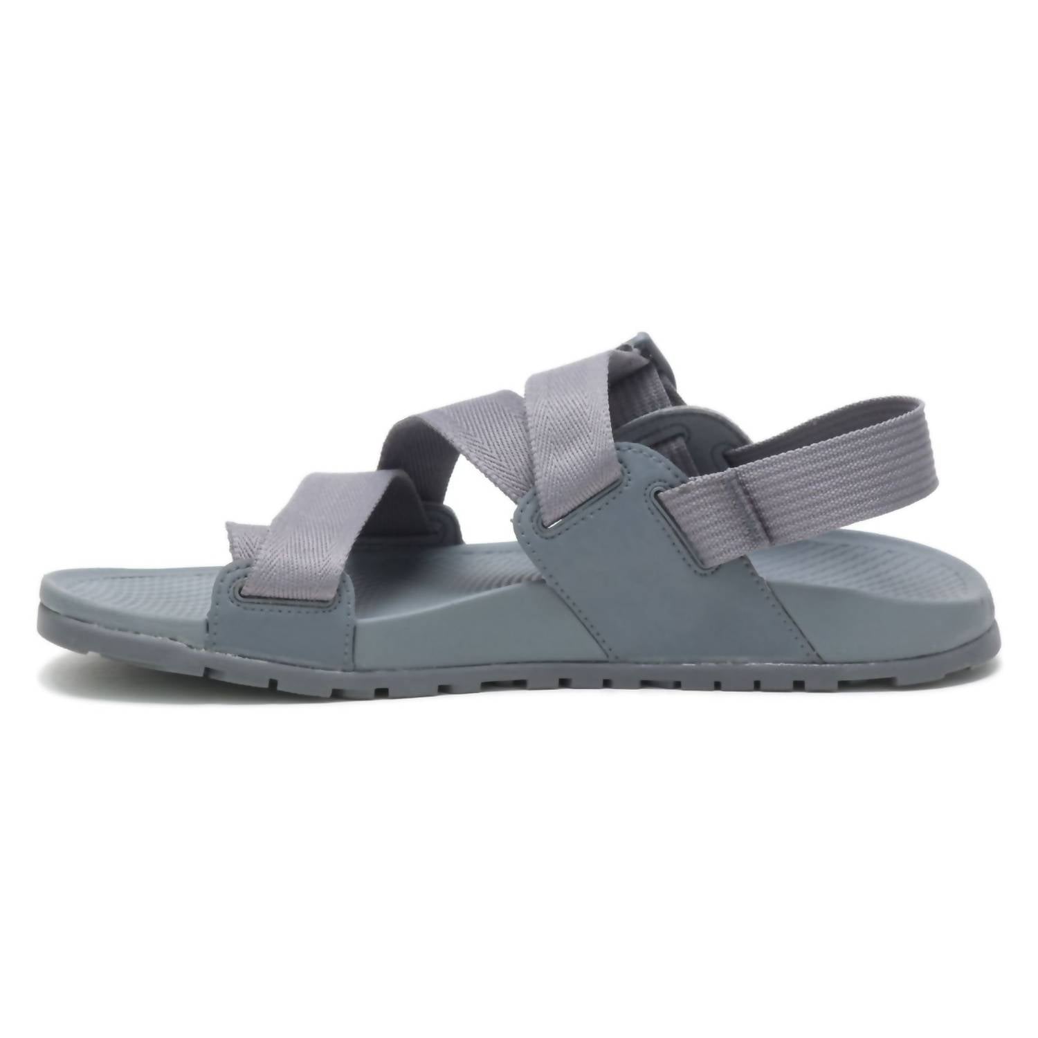 Discover the Men's Lowdown 2 Sandal by Chaco, a gray minimalist sandal crafted for men who love to be on the move. These sandals feature an adjustable polyester jacquard webbing upper with a convenient cinch buckle closure and a toe loop for added security. Designed with a LUVSEAT Upbound EVA midsole promoting healthy foot alignment and ChacoGrip rubber outsole with 3.0mm lug depth, they offer superior comfort and grip. Perfect for outdoor adventures, these vegan-friendly, flat-heeled sandals are a must-have for globe-trotters and outdoor enthusiasts alike.