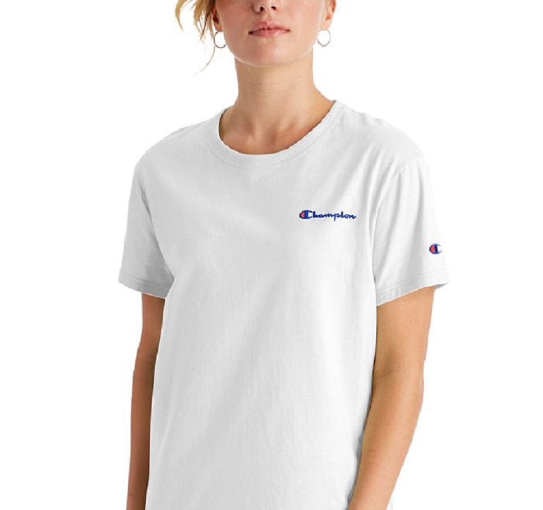 Champion Women's Cotton Logo Boyfriend T-Shirt White Size Small