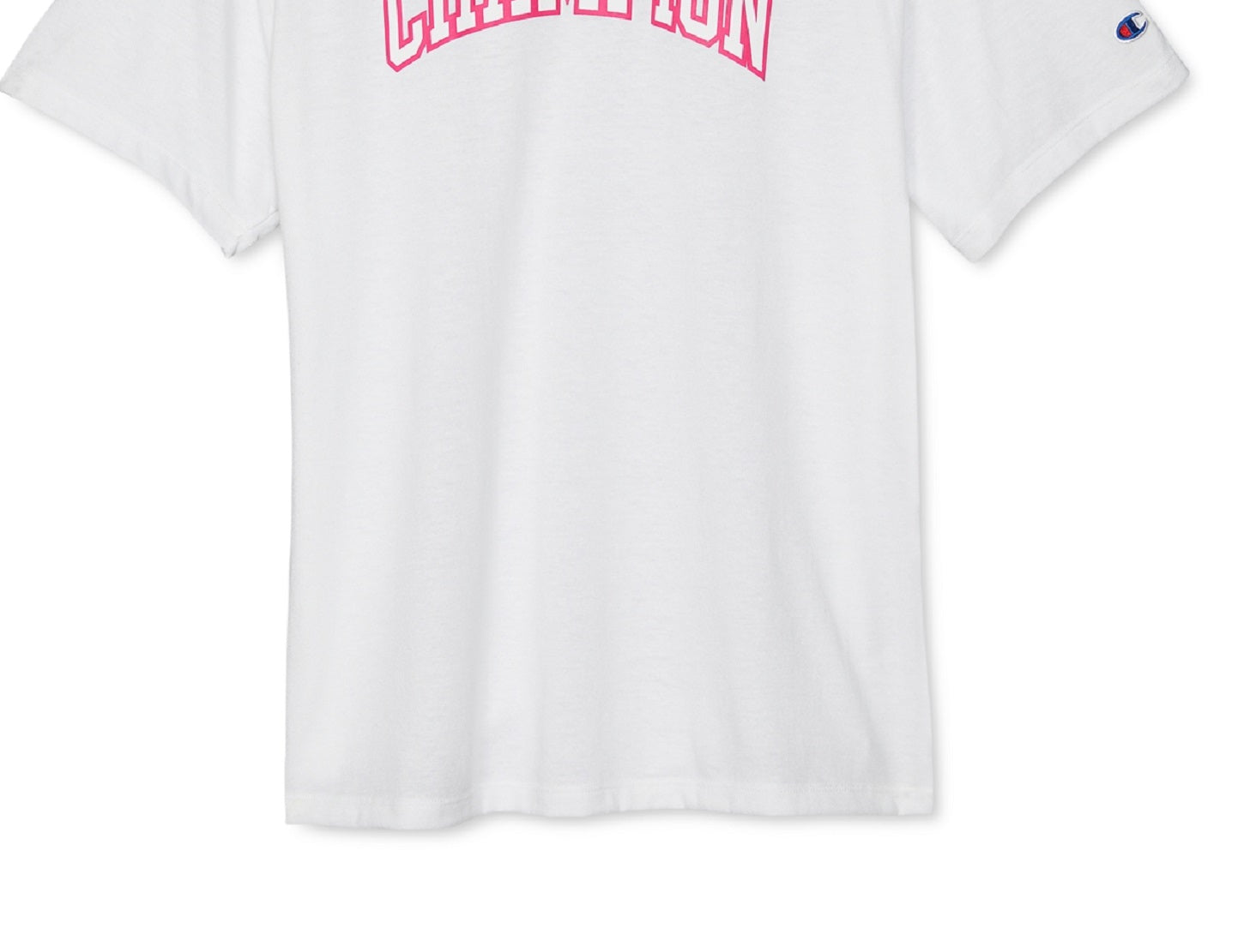 Champion's oversized T-shirt is printed with a varsity-style logo across the chest for a vintage-inspired look.| Imported| Crewneck; pullover styling; logo print at front chest| | Connect with a stylist & get free expert advice online or in stores for your wardrobe| home & more. Book Now|