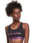 A zebra print bottom band and logo add a pop of print to your sport look in this sports bra from Champion. | Sweat-wicking| Scoop neckline; zebra-print trim; logo print at front; cut-out details at back; racerback style| Cotton/spandex| Machine washable| Imported
