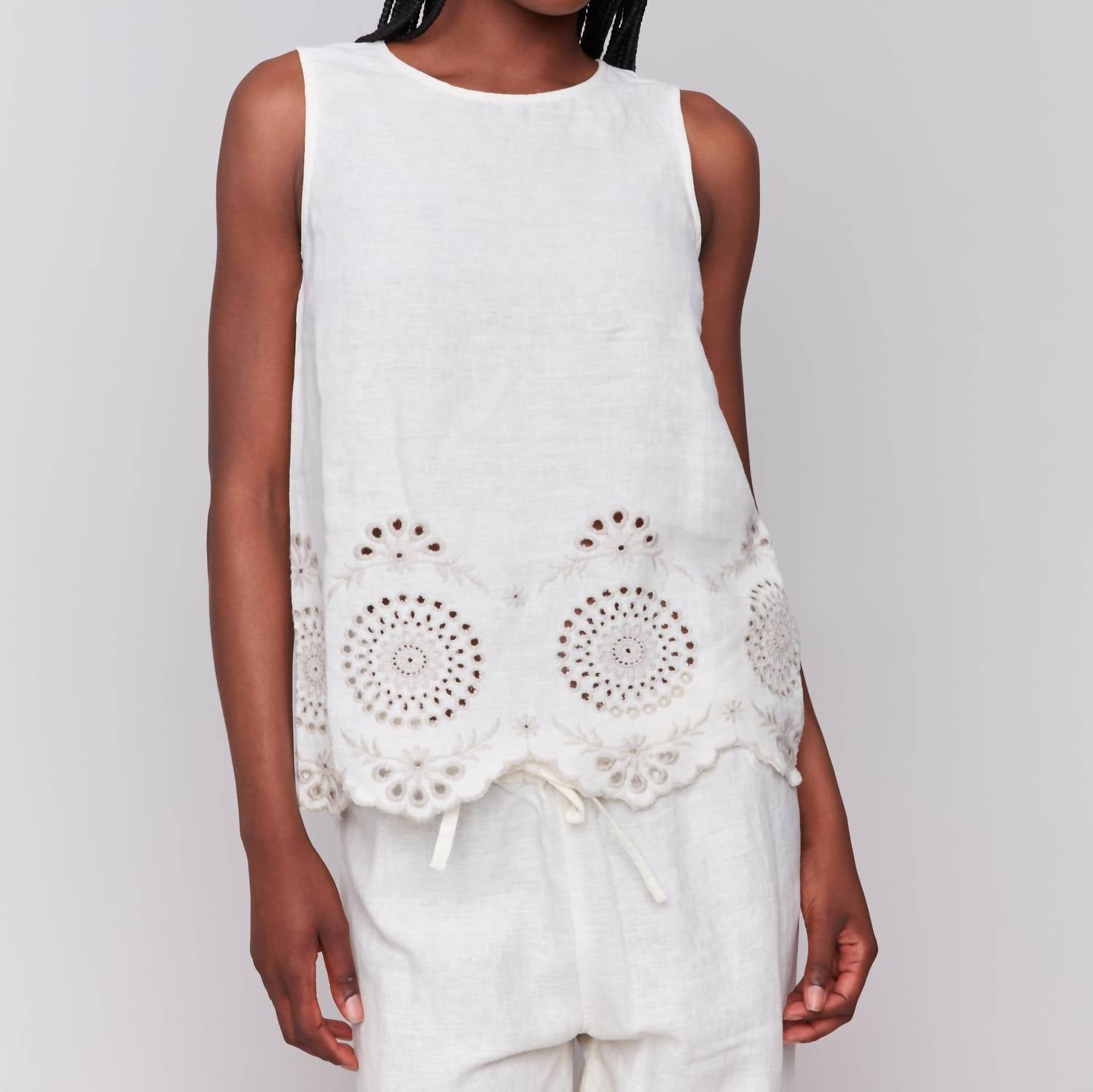 Charlie B - Linen Sleeveless Eyelet Embroidered Top
