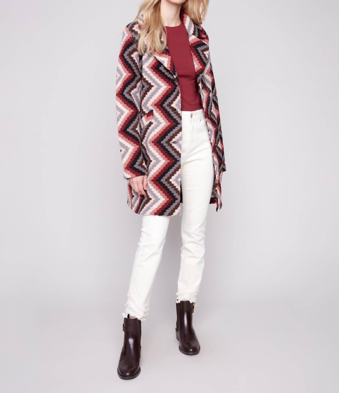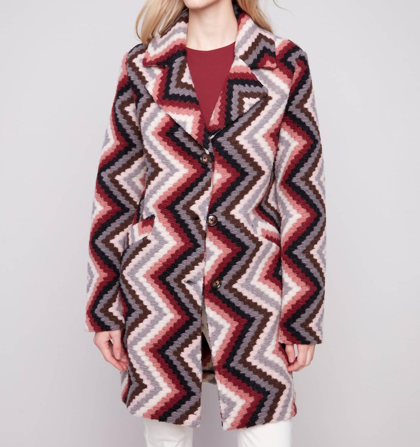 A casual yet cool jacket that every closset needs. The Long Crochet Coat by Charlie B is a maximalist piece in a vibrant primrose color, perfect for adding flair to your fall wardrobe. Crafted from polyester, this casual jacket features a patterned design with a button closure for elegant style. Its long sleeves and collar neckline make it ideal for vacation and holiday outings, including Christmas festivities. Designed for women, it includes practical pockets and requires dry cleaning for maintenance.