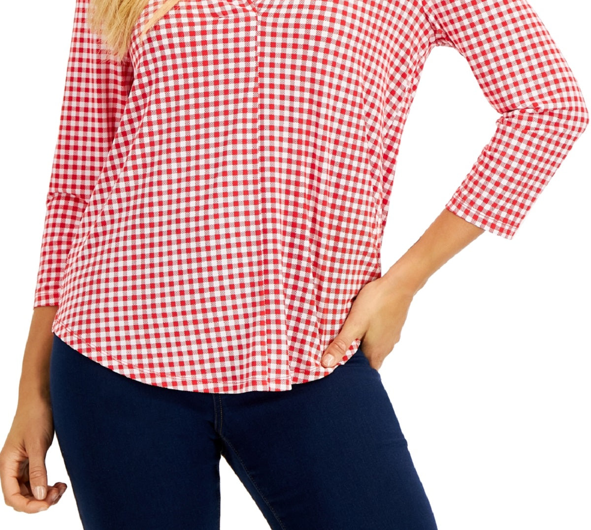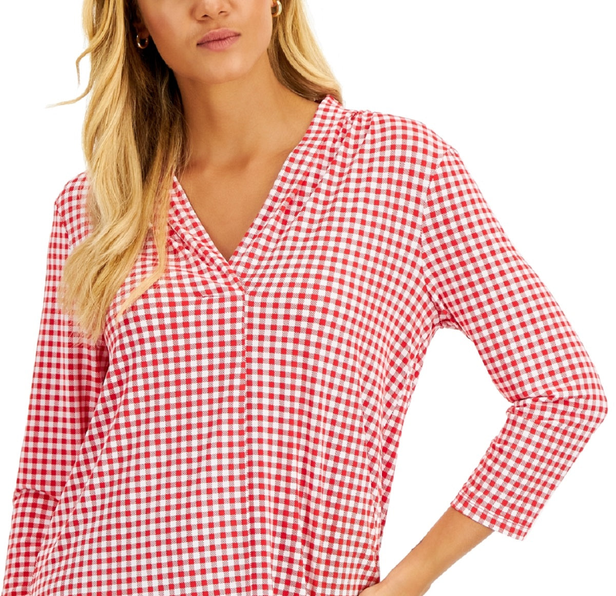 Charter Club Women's V Neck 3/4 Sleeve Top Red Size Petite X-Small