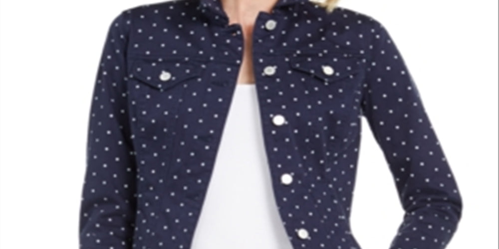 Charter Club Polka-Dot Denim Jacket Blue Size M