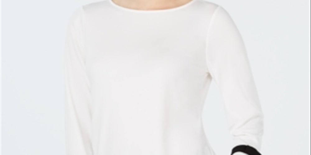 Charter Club Women's Tie Sleeve Crepe Top White Size Small