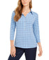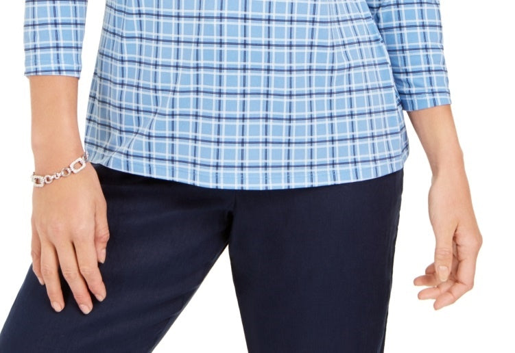 Charter Club Women's 3/4 Sleeve Printed Polo Top Blue Size Small