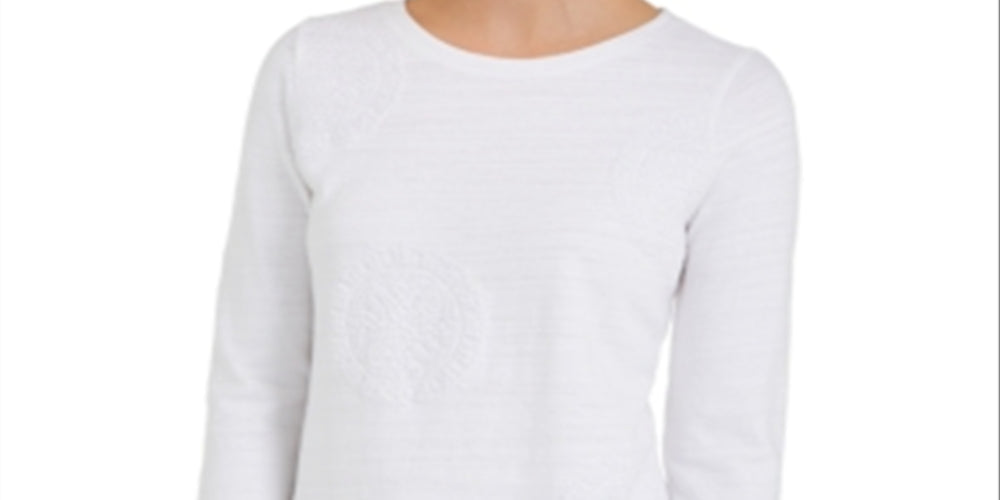 Charter Club Women's 3/4 Sleeve Printed Top White Size Large