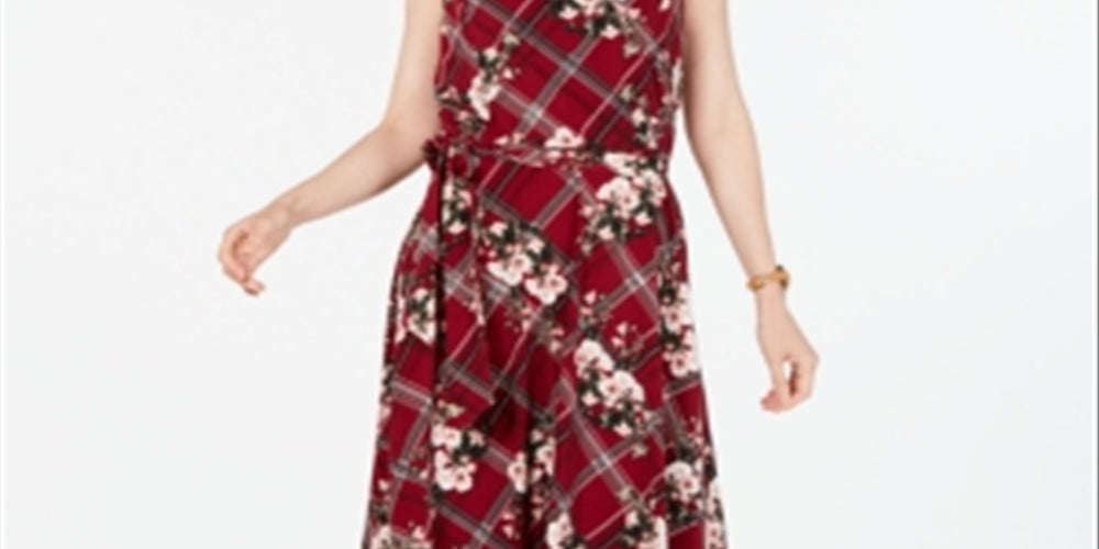 Charter Club's belted dress always makes the right impression| It boasts a combination of refreshing plaid under placed floral print and a length that suits every purpose