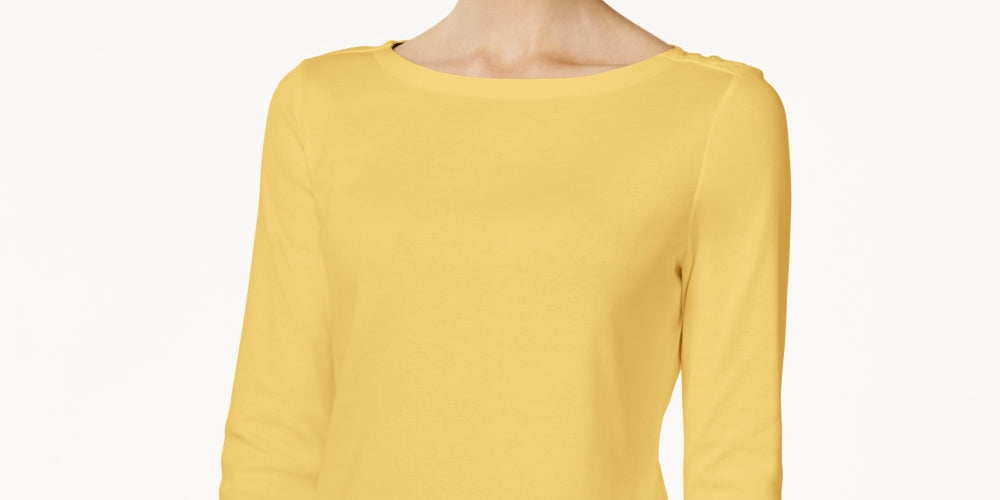 Charter Club Women's Boat Neck Button Shoulder Top Yellow Size X-Large