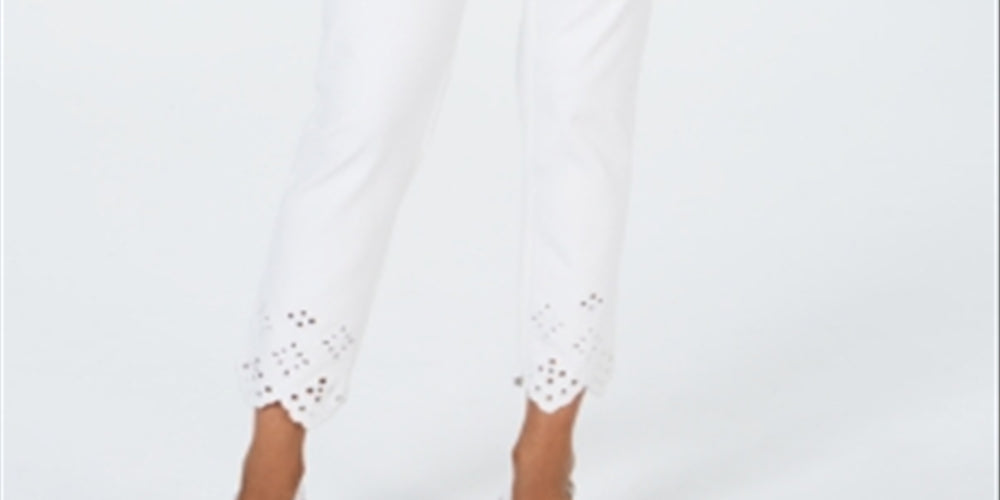 Charter Club Women's Bristol Eyelet Hem Skinny Jeans White Size 14