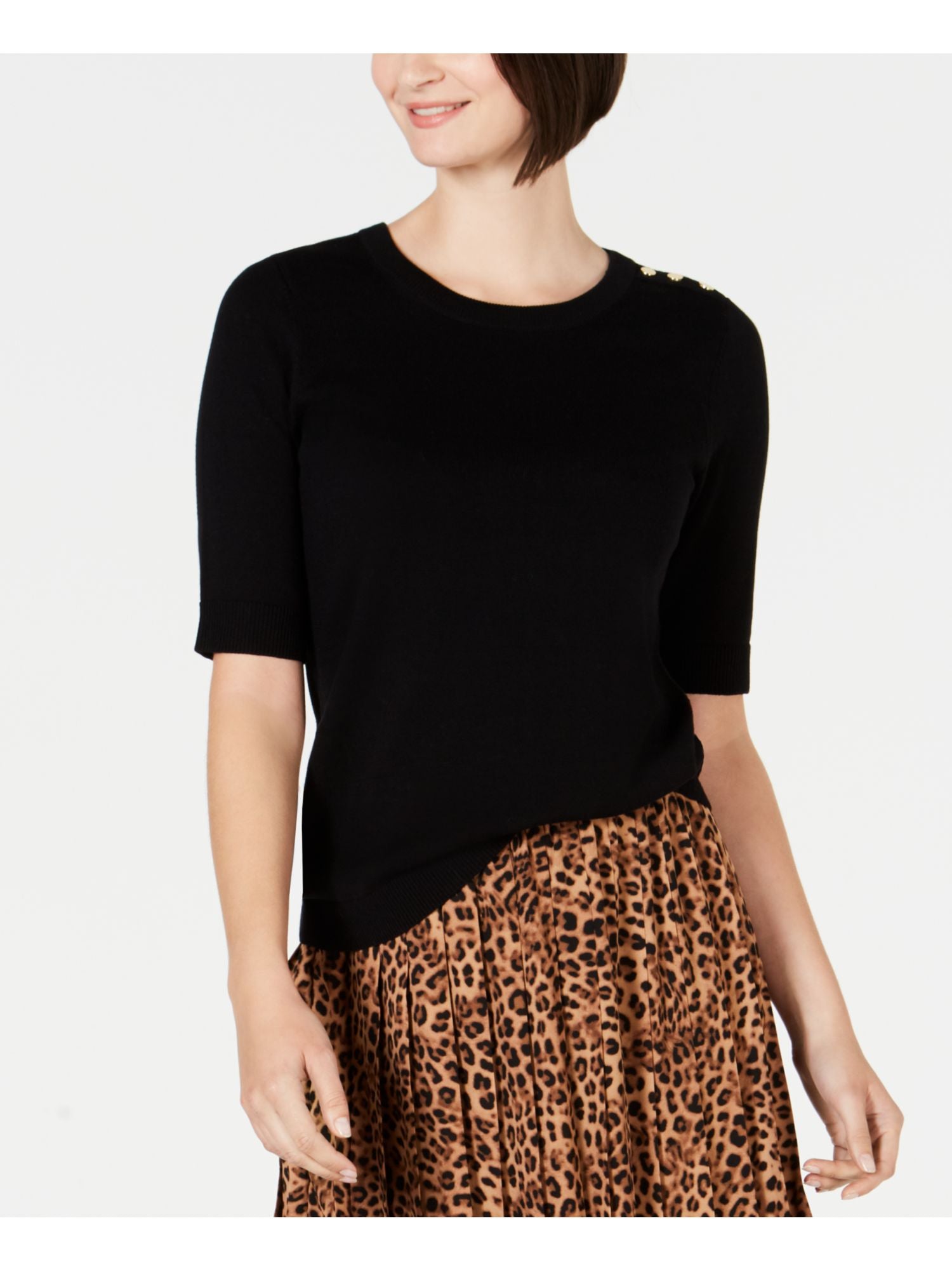 Fitted; hits at hip; approx. 24-1/2" long|Crewneck|3 gold-tone buttons at shoulder|Cotton/modal|Machine washable