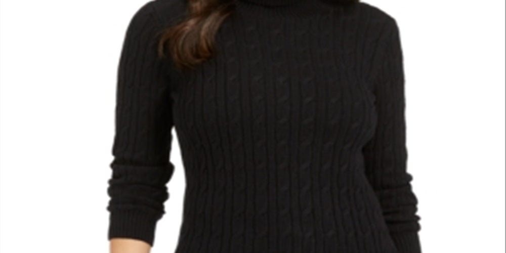 Charter Club Women's Cable Knit Turtleneck Sweater Black Size Petite XL