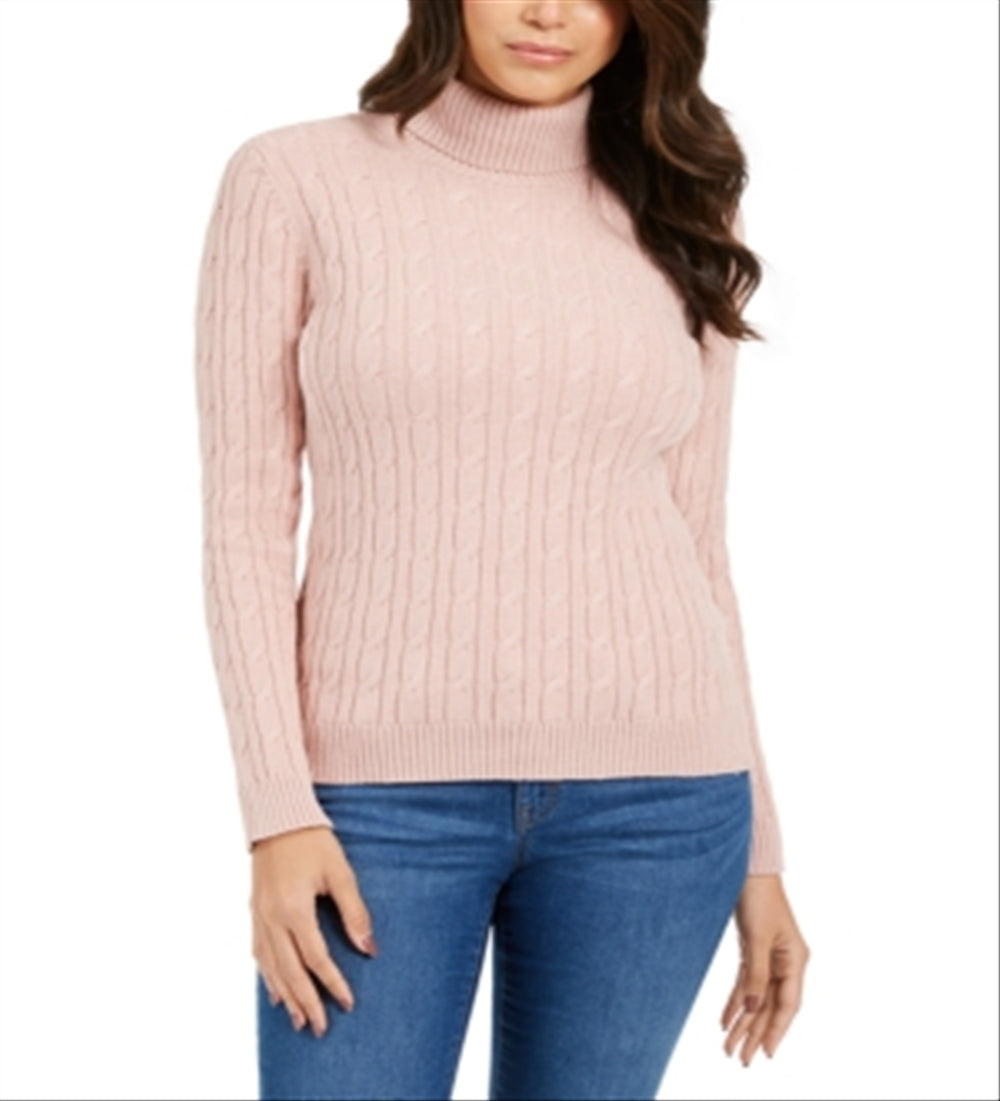 Charter Club Women's Cable Turtleneck Sweater Pink Size XX-Large