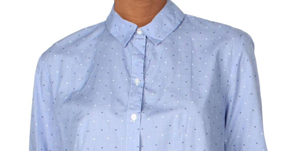 Charter Club Women's Check Print Pindot Button-Down Top Blue Size 4