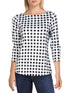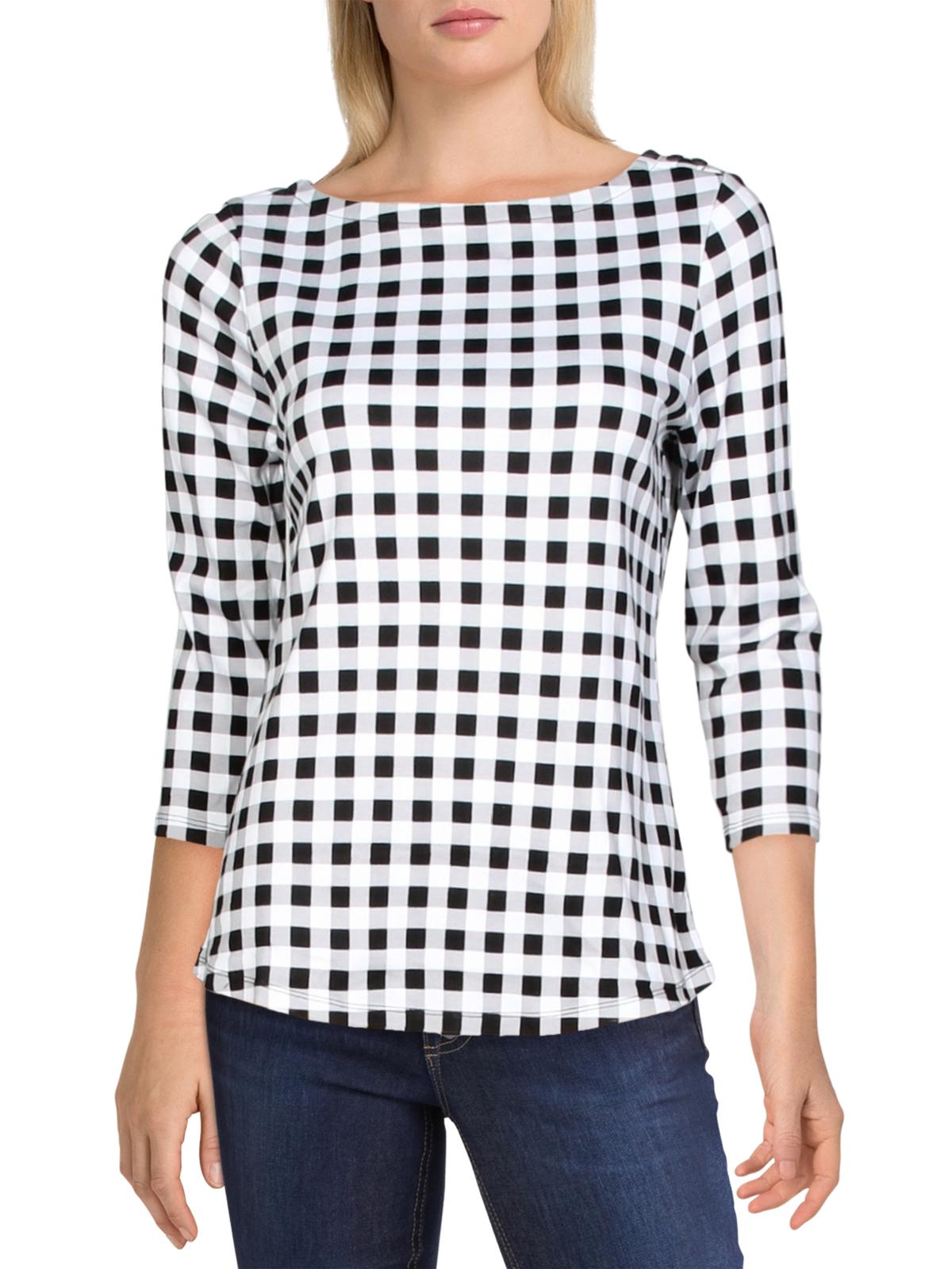 Charter Club Women's Cotton Gingham Print Boat Neck Top Black Size Medium