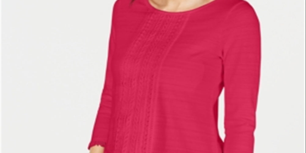 Charter Club Women's Cotton Lace Trim Top Pure Pink Size Petite Small