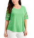 Charter Club Women's Cotton Lace-Trimmed Top Green Size Medium