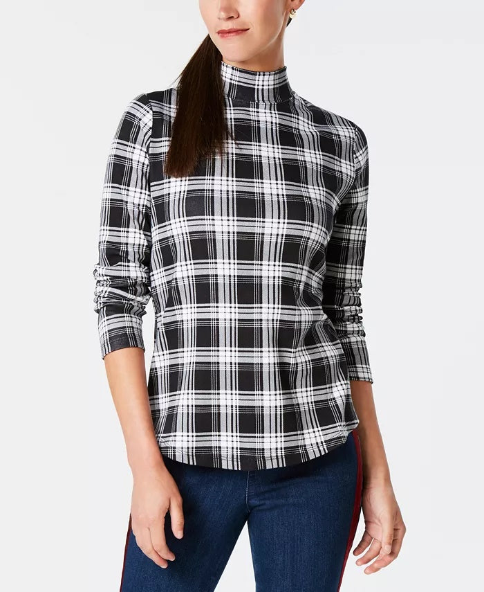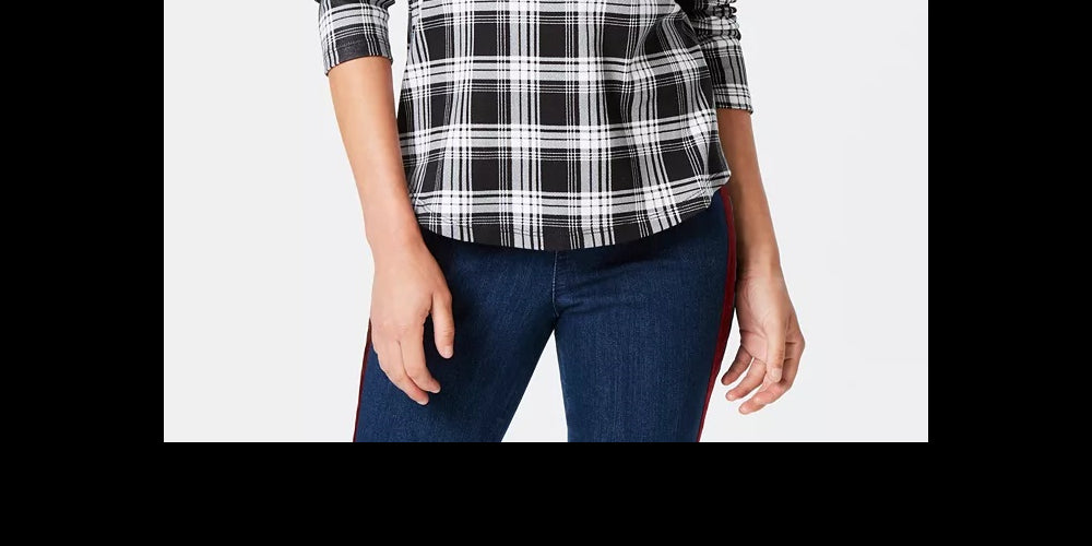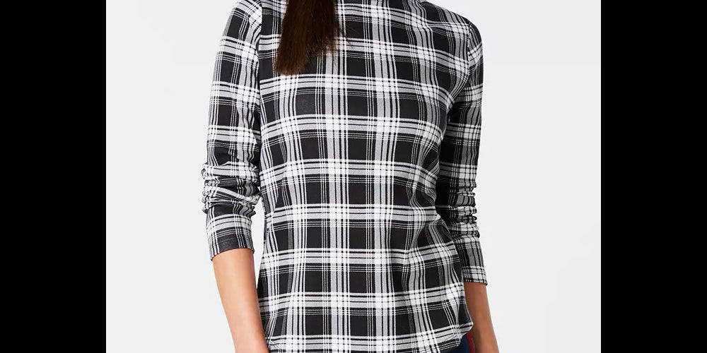 Charter Club Women's Cotton Plaid Top Black Size X-Large