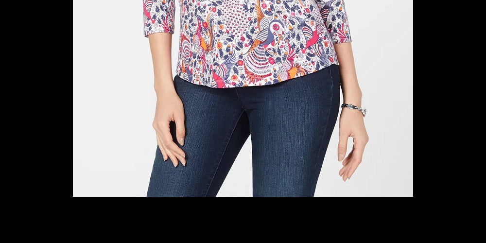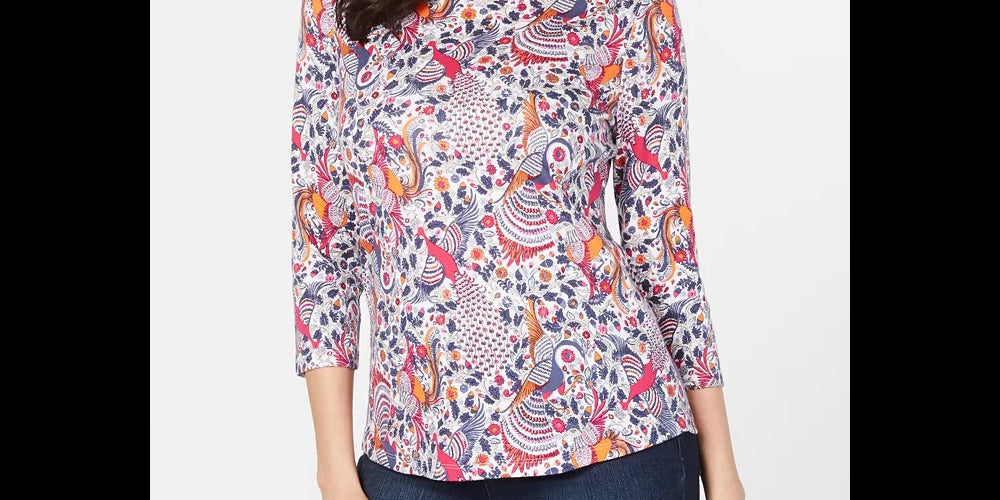 Charter Club Women's Cotton Printed Boat Neck Top Blue Size X-Large