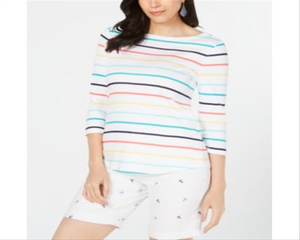 Charter Club Women's Cotton Striped Top White Combo Size Petite XL