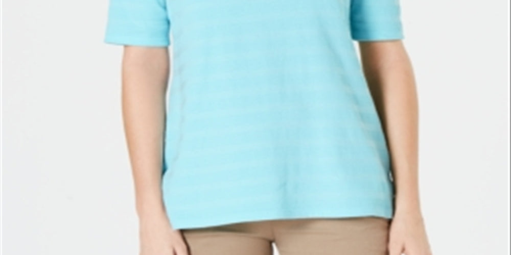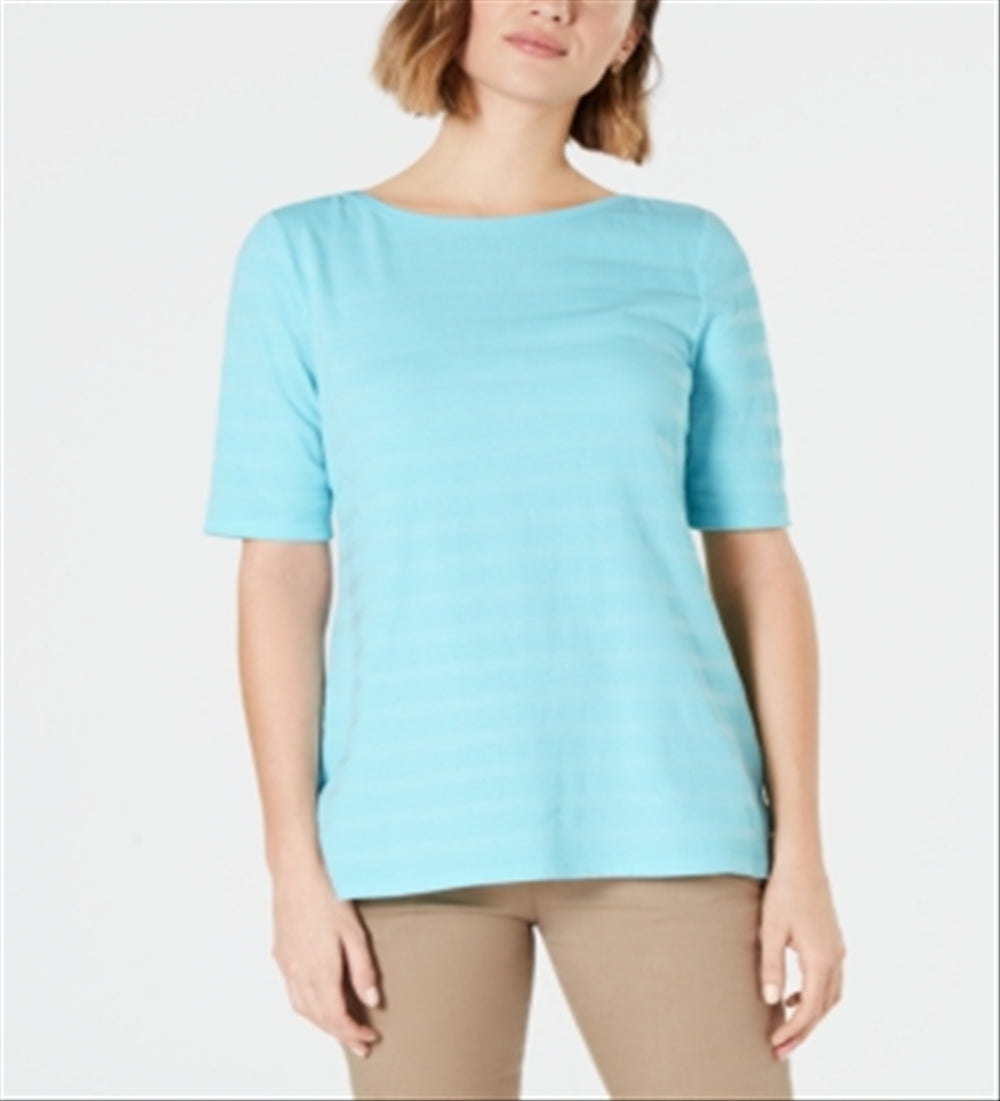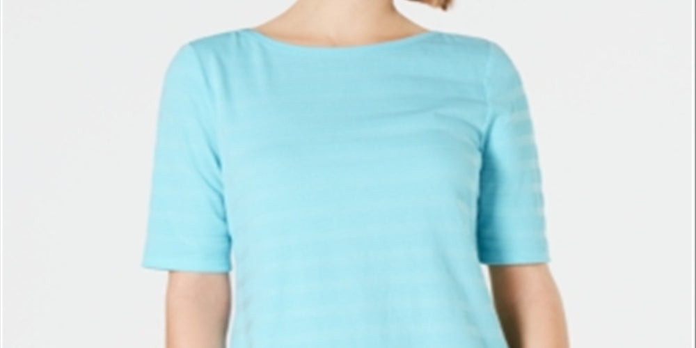 Charter Club Women's Cotton Texture Striped Elbow Sleeve Top Blue Size Large