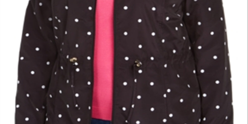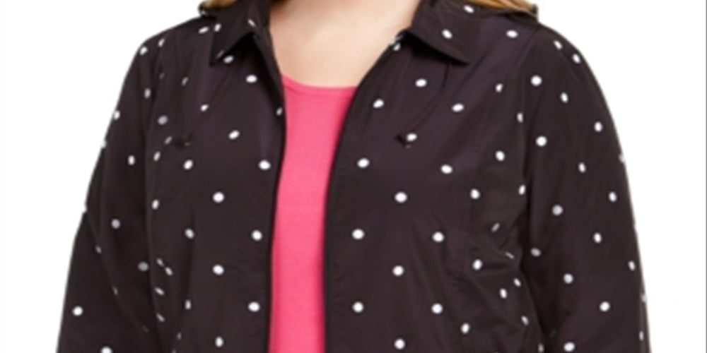 Charter Club Women's Dot Print Hooded Anorak Jacket Black Size 4X
