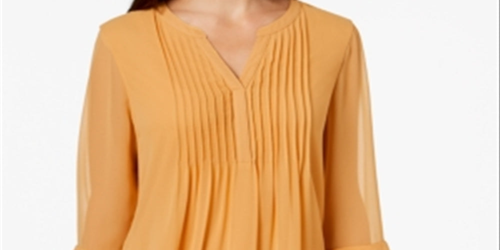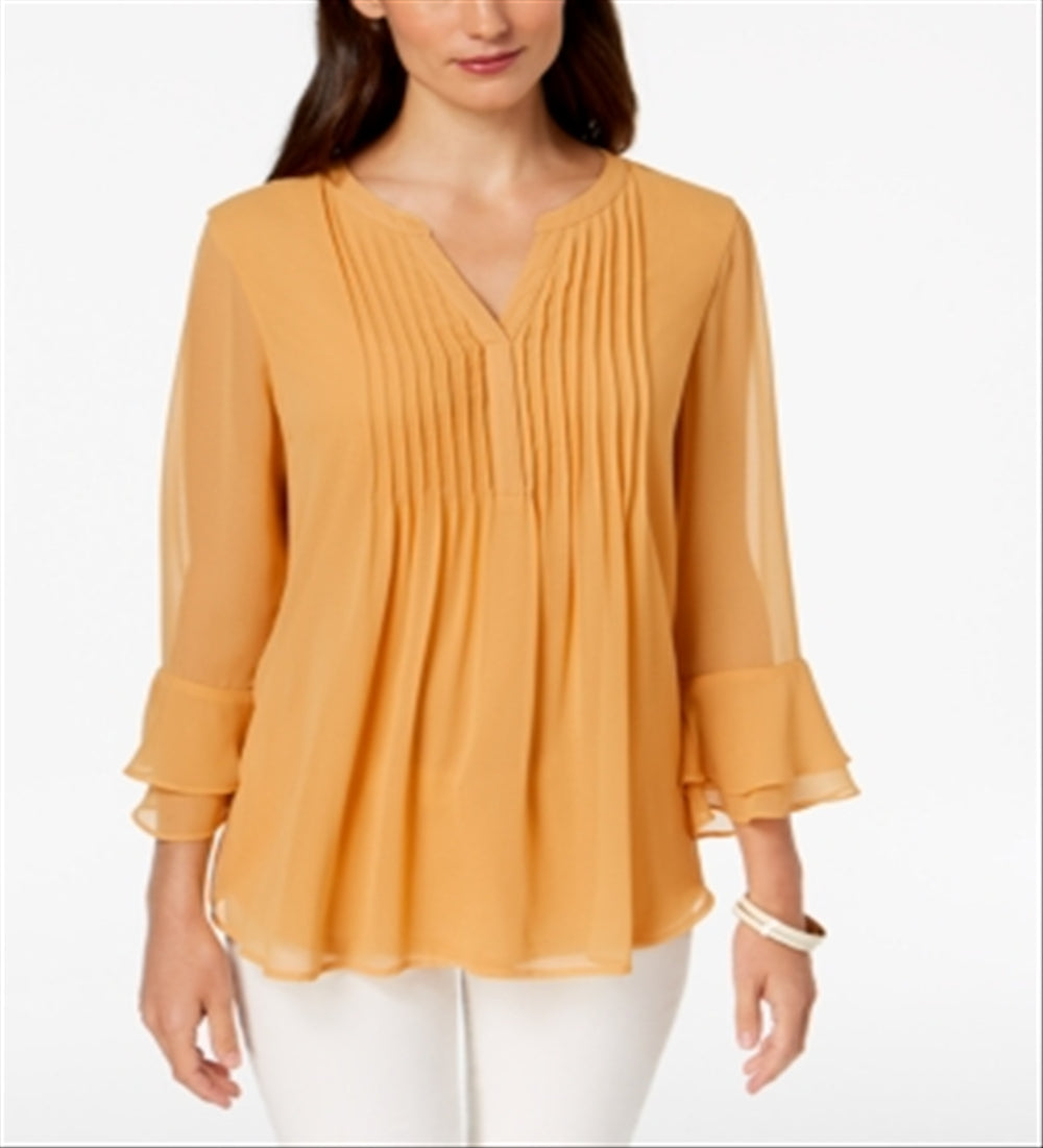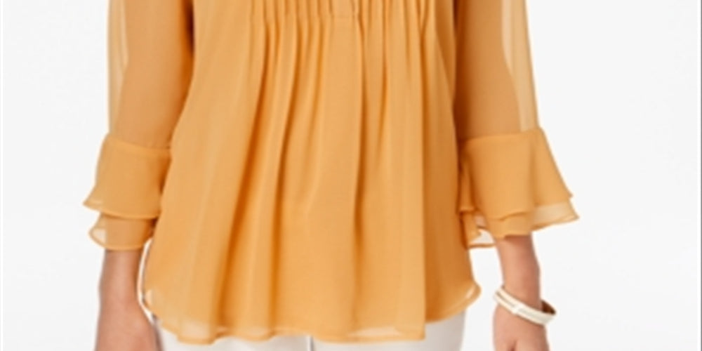 Charter Club Women's Double Ruffle Solid Pintuck Top Yellow Size Petite Small