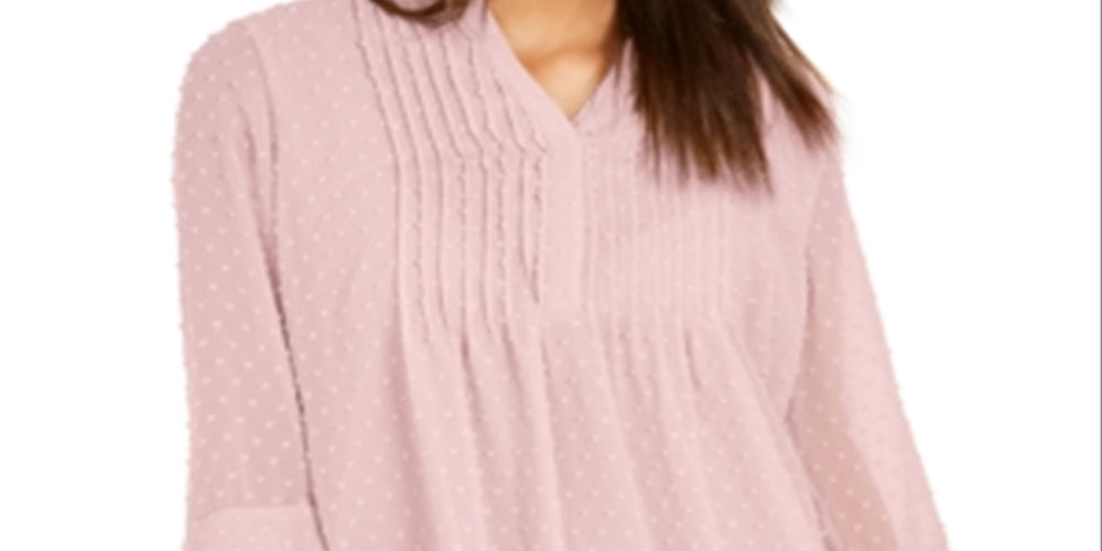 Charter Club Women's Double Ruffle Textured Pintuck Top Pink Size Small