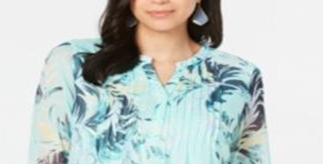 Charter Club Women's Double-Ruffle Top Blue Size Petite Small