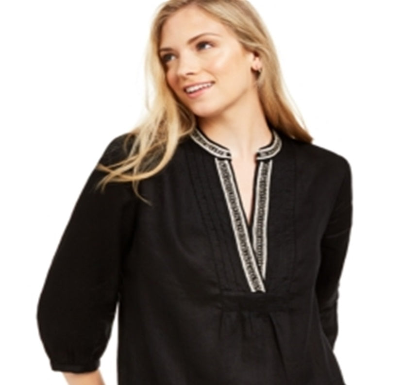 Charter Club Women's Embellished Neck Tunic Black Size X-Small
