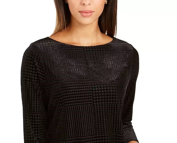 Charter Club Women's Flocked Boat-Neck Top Black Size Petite Medium
