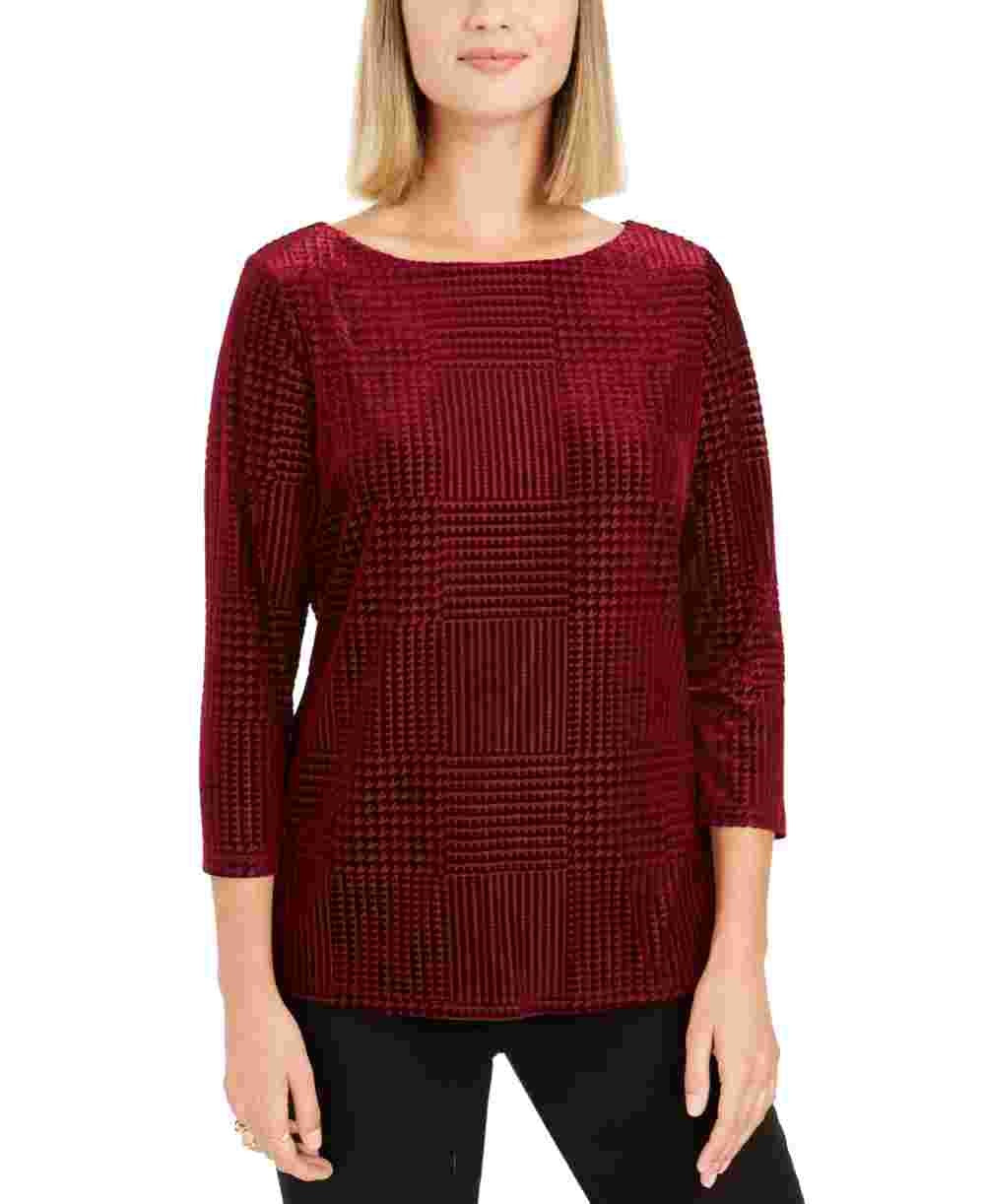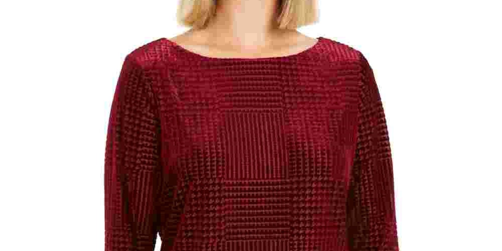Charter Club Women's Flocked Boat Neck Top Red Size Petite Medium