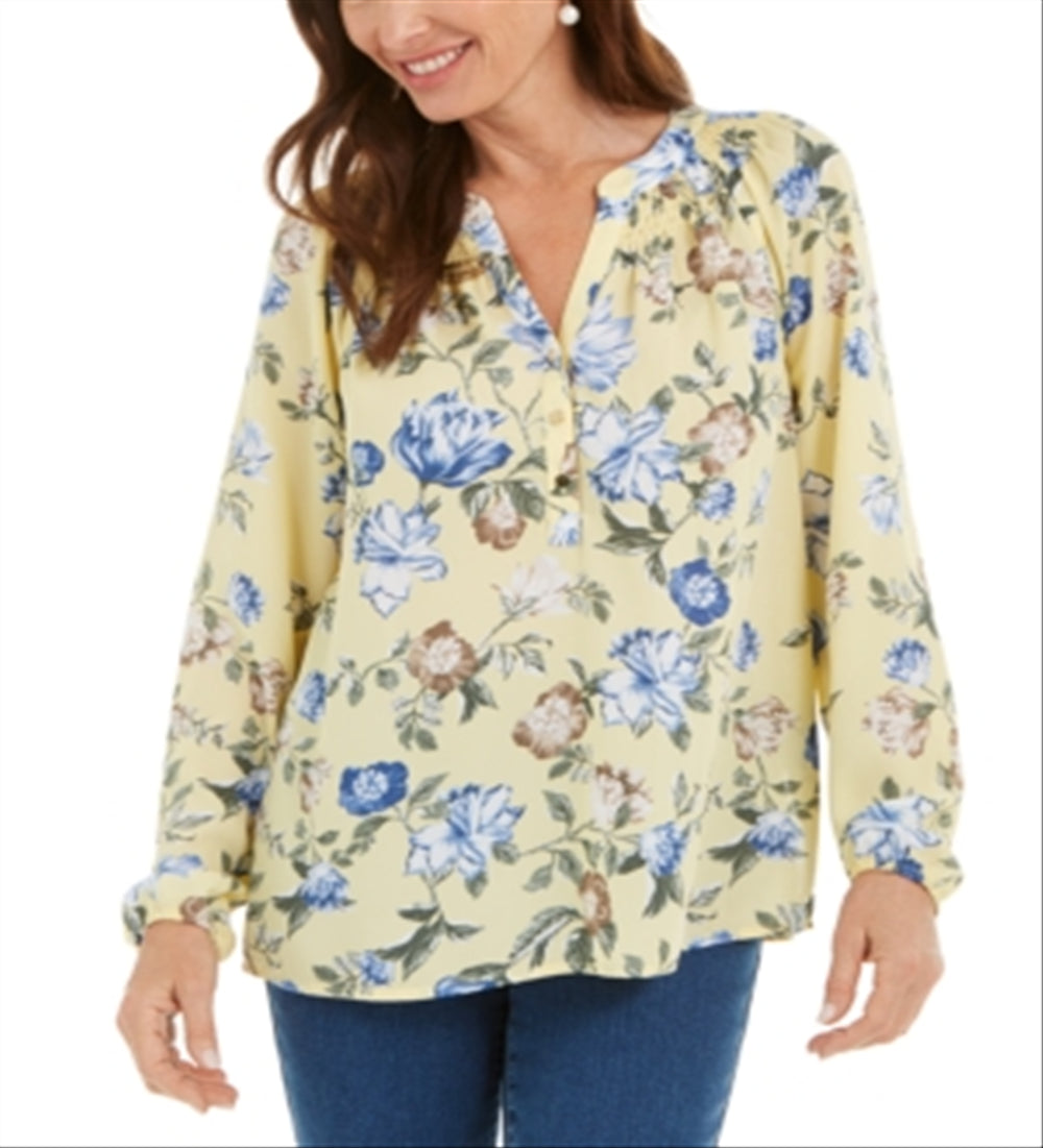 Charter Club Women's Floral Print Georgette Blouse Yellow Size XX-Large