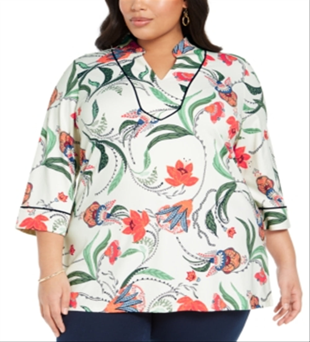 Charter Club Women's Floral Print Tunic White Size -0X