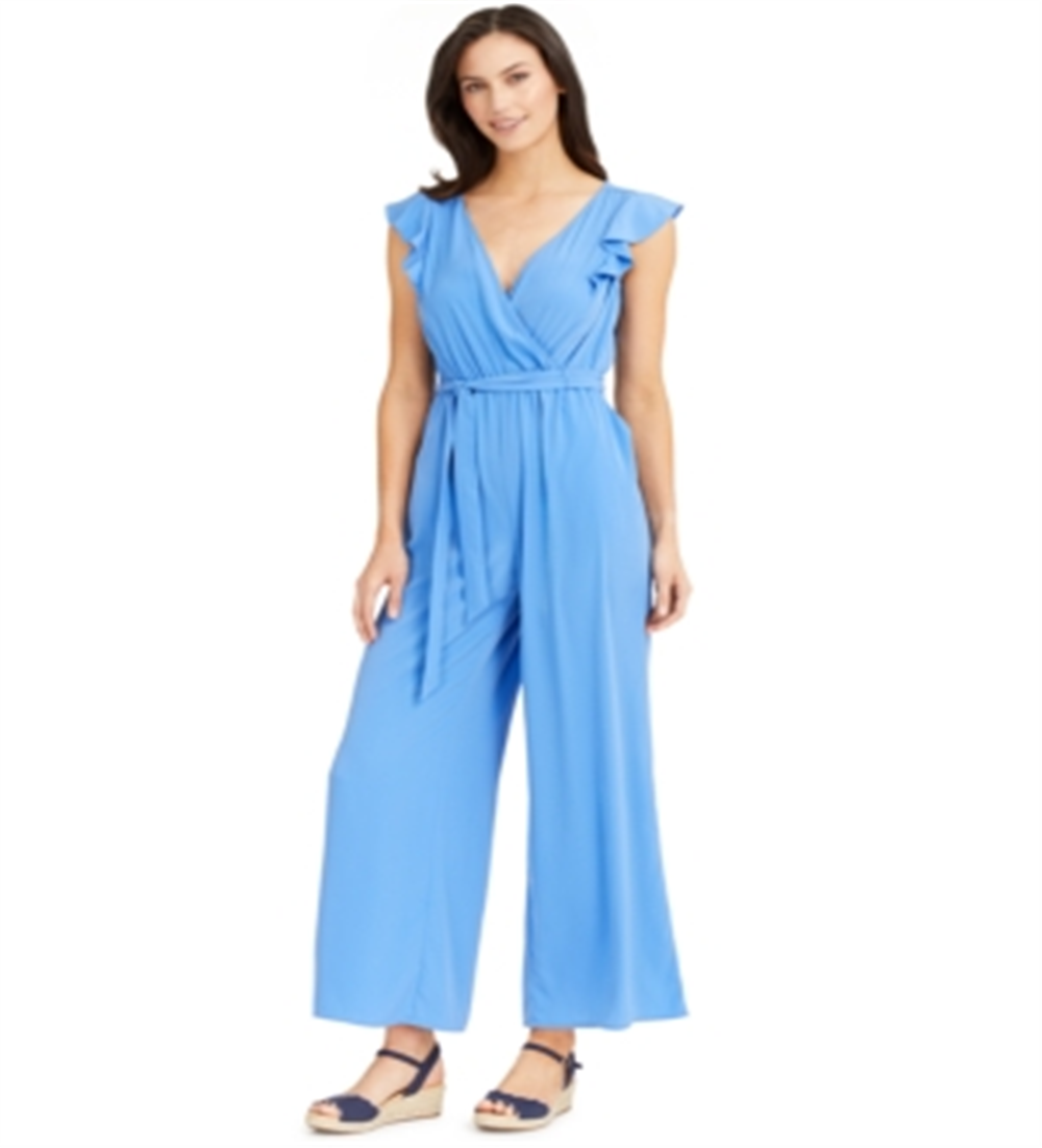 Charter Club Women's Flutter-Sleeve Cropped Jumpsui Baywater Blue 10