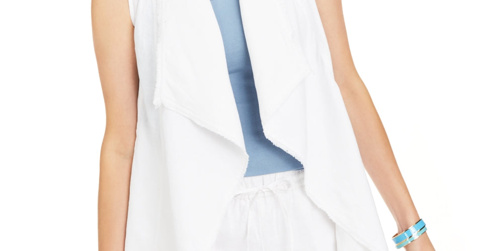 Charter Club Women's Frayed Trim Linen Blend Draped Vest White Size Small