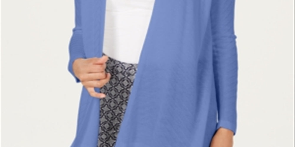Charter Club Women's Geo Stitch Completer Sweater Blue Size Petite Medium