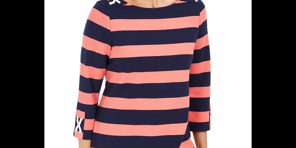 Charter Club Women's Grommet Trim Striped Top Coral Size X-Large