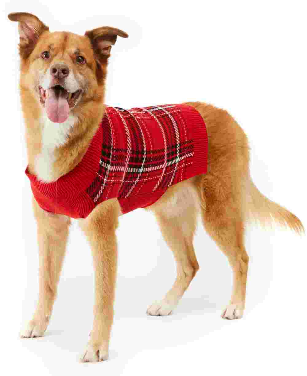 Charter Club Women's Herringbone Plaid Dog Sweater Red Size X-Small