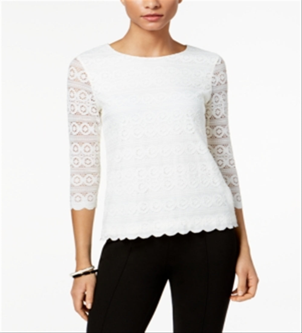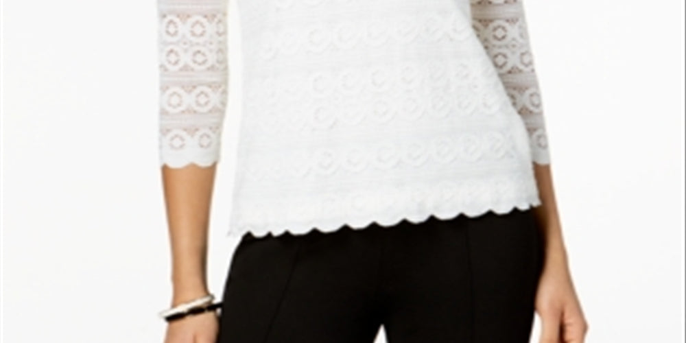 Charter Club Women's Lace 3/4 Sleeve Top White Size Petite Small
