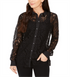 Charter Club Women's Lace Button up Shirt Black Size Petite Small